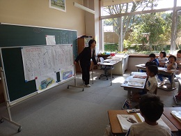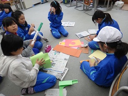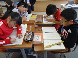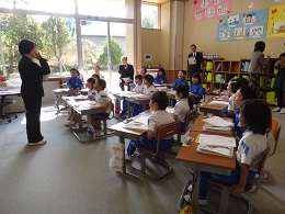 4校時には、1年1組において「じどう車くらべ」の授業が行われました。授業テーマは「自動車の2つの視点について読み取ってきたことを活用して、他の自動車の説明文を書くことのできる授業」で、今まで学習してきた自動車の「しごと」と「つくり」を思い出しながら、はしご車について考えました。1年生なりに、自分の思いを表現し、図鑑のページを完成することができました。
