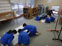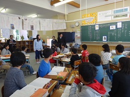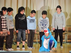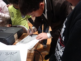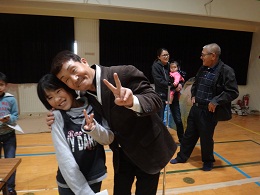 蓬田フェスティバルの前日に、泰楽五郎さんと奥様の朝子さん、そして後援会代表の方が来校し、翌日のフェスティバルの事前リハーサルを行いました。放課後に残っていた子ども達や会場準備をしていた先生方で、「平田夢音頭」を楽しく踊ることができました。会場スペースの都合上、本番では代表児童のみの踊りとなってしまいますが、今日の様子を見た限り、いつか全員で踊らせてあげたいなと思いました。最後に、サインをお願いしたところ快く引き受けていただき、嬉しそうにサインを書いてもらう子ども達の姿が見られました。