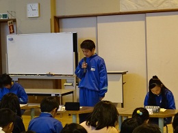 2014年10月16日 17時23分 10月16日(木)の6校時目に、後期の児童会総会が行われました。蓬田小学校の児童会活動をさらに活発にするために、各委員会の委員長から活動目標と活動計画が発表されました。今回は、来年度に向けて3年生も参加し、質問の時間には、積極的に手を挙げて意見を述べる姿が見られました。上学年児童全員が各委員会の仕事内容を理解し、みんなで協力すれば、蓬田小学校の学校生活が、より充実したものになるはずです。今日の話し合いを生かした自主的な活動を期待しています。