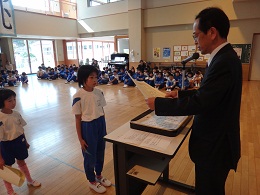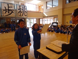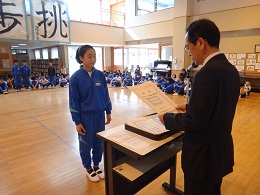 ※時間の都合上、各スポーツ少年団の表彰は、来週の集会時に行うことになりました。