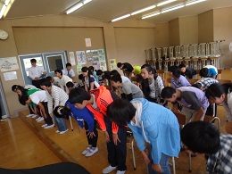 授業後には、蓬田中学校で取り組んでいる「15分間走」を見せていただきました。誰一人として力を抜くことなく最後まで黙々と走り続ける姿に、中学生の志の高さを感じました。15分間走った後には、全員での全力ダッシュも数本行うなど、体力向上に本気で取り組んでいる姿が見られました。また、体力作りの後には、部活動の見学を行い、自分の入りたい部活動を中心に見学を行いました。この素晴らしい先輩達の姿を刺激に、蓬田小学校の子ども達にも頑張って欲しいと思います。
