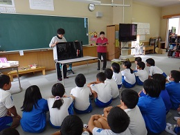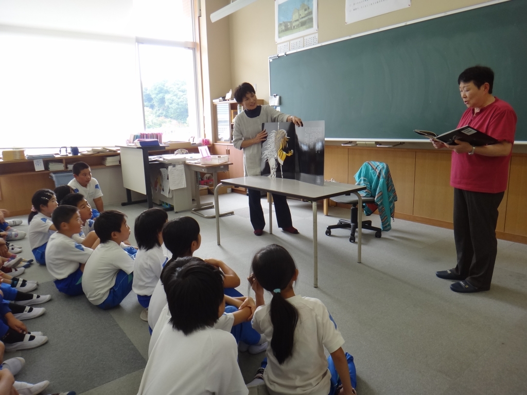 2014年9月24日 16時30分 9月24日(水)には、「夢工房」さんによる本の読み聞かせが行われました。1年間を通して、全学年が楽しいお話を聞かせていただく予定で行われています。今回は、4年生において実施され、心温まる有名なお話「花さき山」の絵本、初めて聞く「ウェン王子とトラ」というお話を読み聞かせていただきました。子ども達は、本の世界に引き込まれ、目を輝かせながら夢中になって聞く姿が見られました。このような本に親しむ機会を定期的にもつことで、たくさんの本に触れ「心の栄養」になることを願っています。