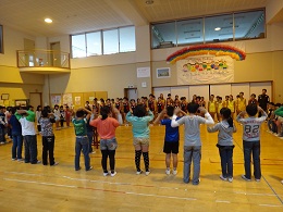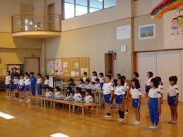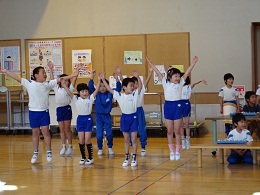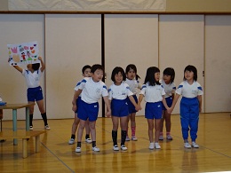 2014年9月29日 16時35分 自己表現力の向上の取り組みとして、年間を通して行われている発表集会は、各学年年間2回実施する予定で行われています。今回の発表集会は、初めて行う1年生の発表でした。音楽のリズムに合わせ、鍵盤ハーモニカを演奏しながら、可愛らしい歌と演技で会場を盛り上げました。