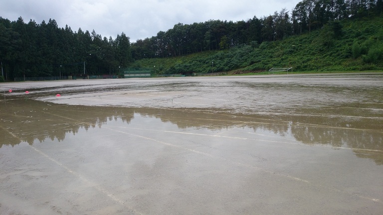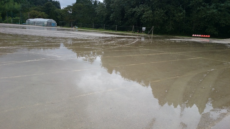 2014年9月11日 13時31分 本日予定されていました村陸上交流会ですが、開始直前の降雨によるグランドコンディションの悪化のため、急きょ順延となりました。競技会場周辺のみの降雨とあって、学校で出発準備をしていた子ども達は、延期の連絡に驚いたことと思います。残念ではありますが、明日の実施に期待をして体調を整えてほしいと思います。