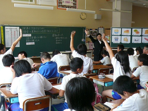 2014年9月9日 14時46分 9月3日(水)から教育実習生と過ごした5日間も9日(火)で最後となりました。6年生を中心に授業を参観して過ごしましたが、他の学年においても、学級活動の時間で「食事の見直し」について授業を一緒に行ったり、給食の食べ方について一緒に考えたりしました。休み時間には、低・中学年の子ども達と楽しく遊んで過ごすなど、教育実習生にとっても子ども達にとっても、とても充実した5日間だったようです。