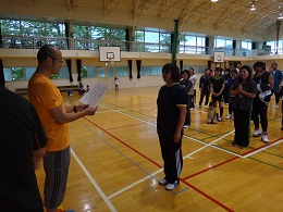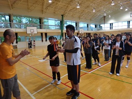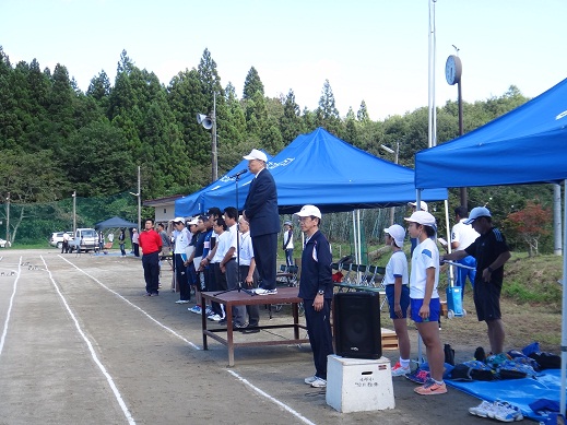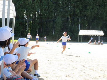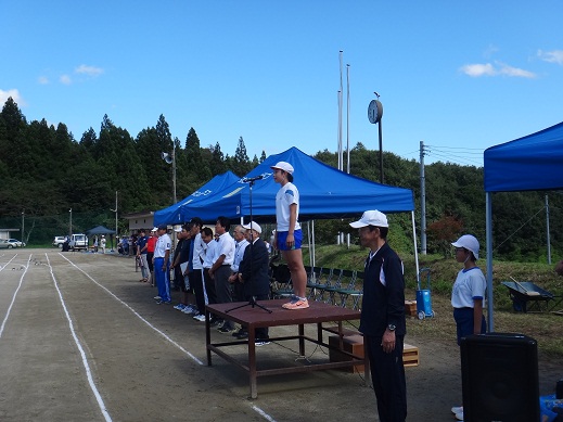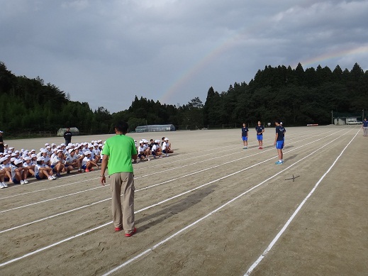 閉会式での代表の言葉 蓬田中教頭先生による陸上教室