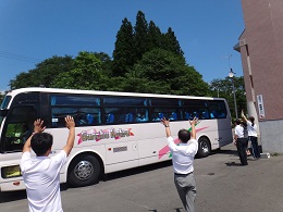 2014年8月20日 16時14分 8月20日(水)に、地区小中学校音楽祭が行われました。合唱部の子ども達は、体育館で最後の調整をした後、全員がバスに乗って元気に出発しました。大会では、緊張の中、今までの練習の成果を十分に発揮し、素晴らしい合唱を披露することができました。子ども達の思いが通じることを願って、結果を楽しみに待ちたいと思います・・・