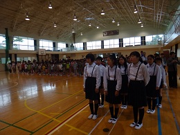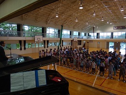 2014年8月25日 10時53分 始業式終了後、合唱部の県大会壮行会が行われました。先日の金賞受賞から4日間、土曜日と日曜日も練習を行い、さらに自信をもった姿での壮行会となりました。県大会という大きな大会に向けての緊張感と期待感が、合唱部の子ども達をさらに成長させているように感じられました。一段と素敵になった歌声に、全校生も魅了されていました。保護者の方も、ぜひ明日の大会会場に足を運んでいただければと思います。