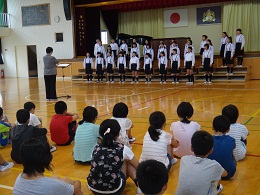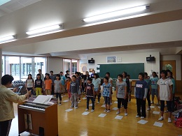 合唱部は、昨日の金賞受賞をうけて、さっそく県大会に向けての練習が始まりました。陸上部は、村の陸上交流会や小体連に向けて、これから本格的な練習に取り組みます。自転車部は、交通安全の看板作りに取り組む予定です。暑さの中、休むことなく練習に取り組んだことで身に付けた力を、2学期からの練習でさらに伸ばしていってほしいと思います。