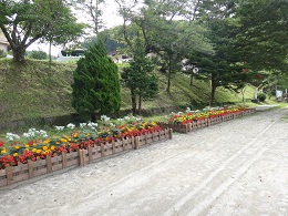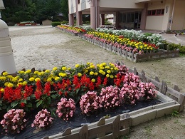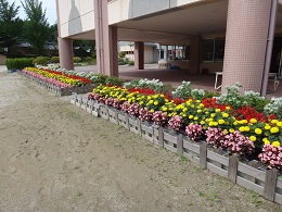 子ども達の苗植え活動、前年度卒業生による柵作り活動、用務員による日常の手入れ、これら多くの取り組みによって素敵な花壇が作り上げられました。きれいな花を見ながら、気持ちよく2学期の生活がスタートできそうです。