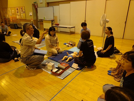 2014年7月16日 09時29分 7月16日(水)には、夏休み中の水難事故対策として、家庭教育学級「救命救急法」が行われました。今年度もたくさんの保護者の方々に集まっていただき、救命時の心構えや人工呼吸法について、須賀川消防署員の講師の方よりご指導を受けました。参加者全員が、実際に人体模型を使って実習することで、より実践的な感覚を身に付けることができました。夏休み中は、プールでの事故以外にも様々な危険箇所での事故の発生が予想されます。一人の事故も無く、全員が無事に過ごせることを心から願っています。