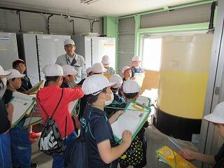 まずは、乙空釜浄水場へ。川からくみ上げた水が、どうやって安全に飲める水になっていくのかを学びました。