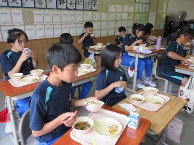 2024年6月5日 12時29分給食の時間の様子です。今日も,おいしくいただきました。