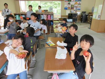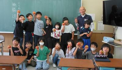 今日の給食は,その地域おこし協力隊の方が作られたかぶが使われています。3年生で一緒に,試食していただきました。また,栄養教諭が,かぶの実物を見せながら全学級を回りました。やわらかいかぶをおいしくいただきました。