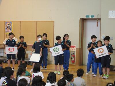 4年生は,英語で「曜日の歌」を元気に歌いました。